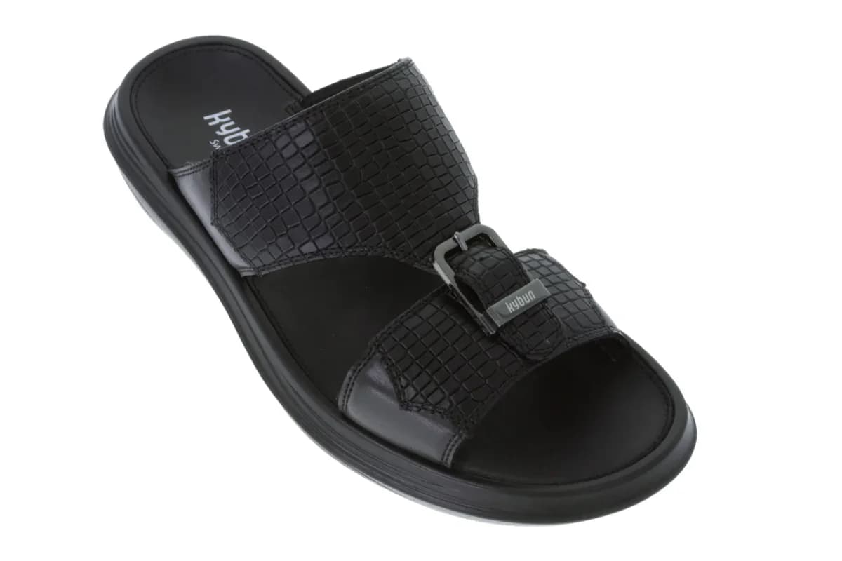 صندل من جلد الزواحف المنقوش الأنيق والرائع، مع إبزيم أمامي مصقول. تصميم حصري بأشرطة جانبية ناعمة لمظهر أنيق ومميز. يتميز بنعل ستراتو ذو الوسادة الهوائية السويسرية الفريدة من نوعها، مع تأثير ارتداد عالي، والذي يوفر إحساسًا لطيفًا بشكل استثنائي بالمشي مع تخفيف الضغط على المفاصل والظهر، وتحفيز المستقبلات المعززة للصحة في القدمين وتقوية العضلات في كل خطوة.